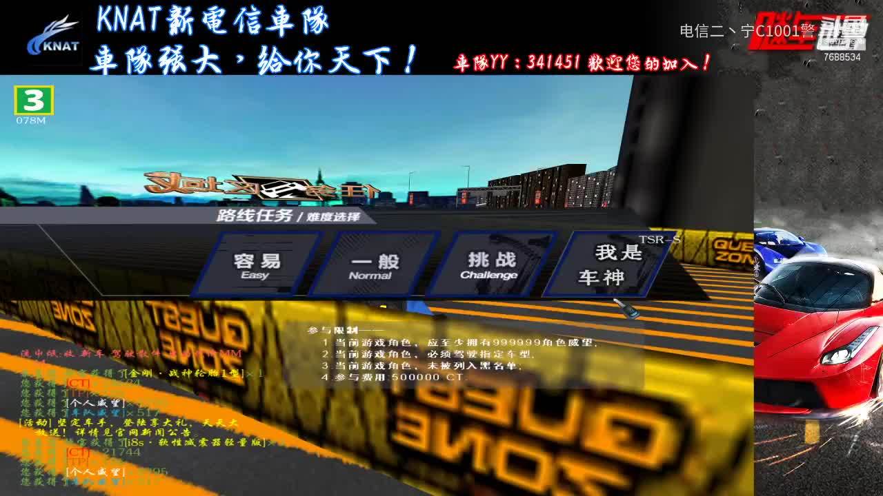 飚车世界电信二丶宁C1001警的直播间