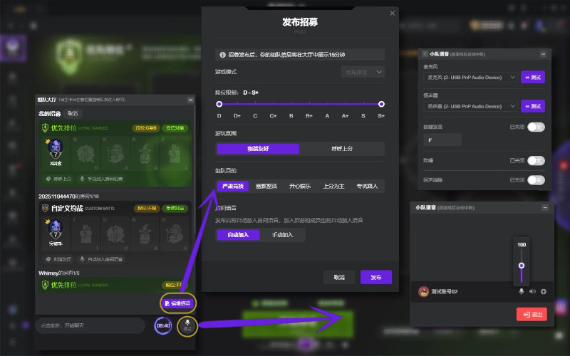 *通过【招募】功能入队的玩家将进入赛前小队语音,上分乃大事,开赛前的友好沟通不能少哦~