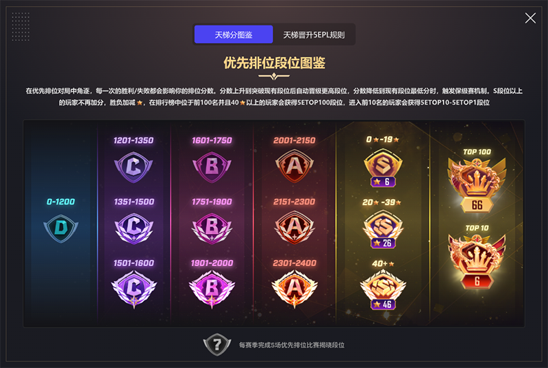 S 分段改用升星制度,每 20 星提升一个段位,达到 SSS 且名列榜单前100的玩家享有专属段位认证(实时变化)。