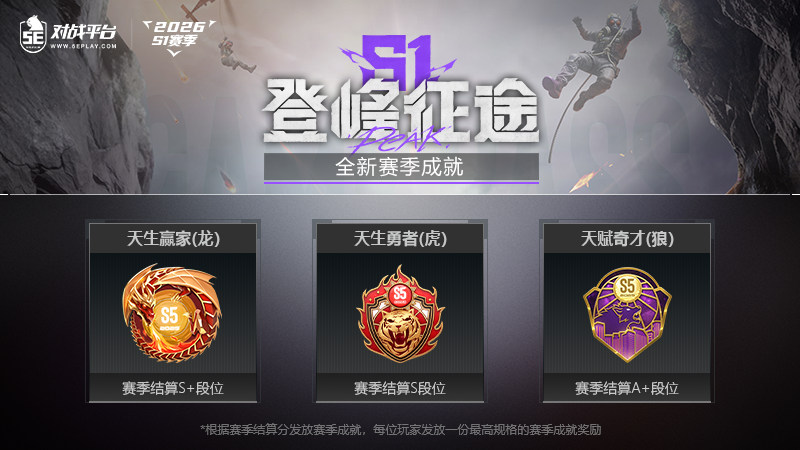 2026S1赛季,5E对战平台排行榜功能焕新,完成定级赛即可参与奖励角逐——
