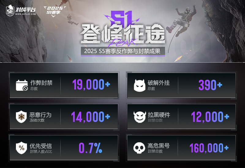 公平对决始终是每一位玩家与反作弊团队的核心期盼。5E对战平台将以2026 S1赛季为新起点,持续迭代反作弊技术、优化检测模型,用最坚决的态度捍卫每一场对战的公正性。欢迎各位玩家积极提供作弊线索,与我们一同携手,共建纯净比赛环境!