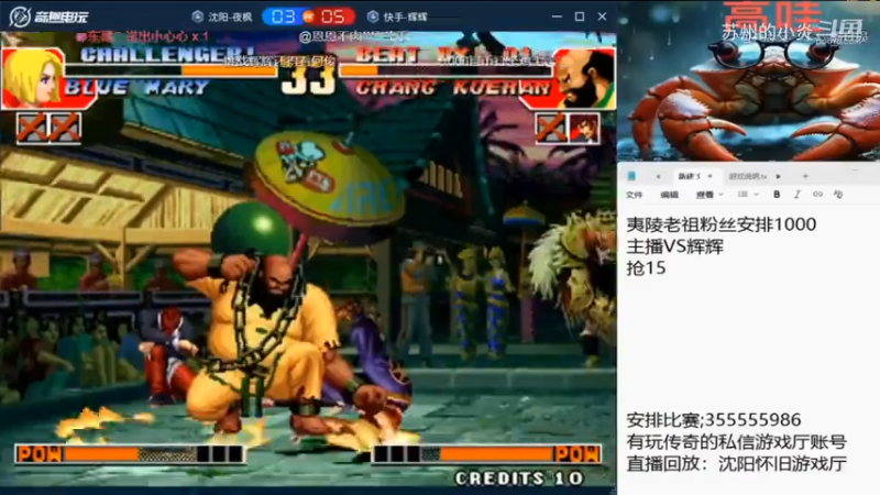 赞助1000!拳皇97抢15:夜枫V辉辉2025.11.11夜枫视角